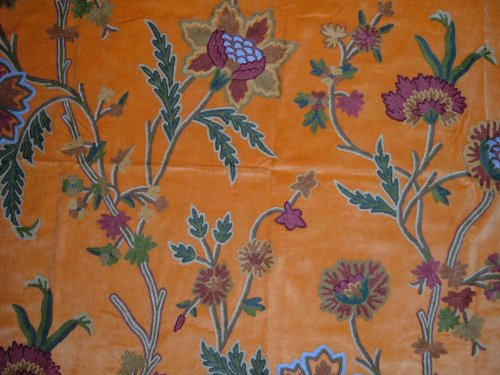 Crewel Fabric Shalimar Bright Orange Cotton Velvet