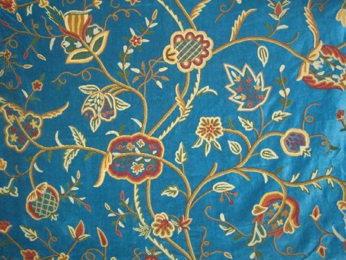Crewel Fabric Lotus Turquoise Cotton Velvet