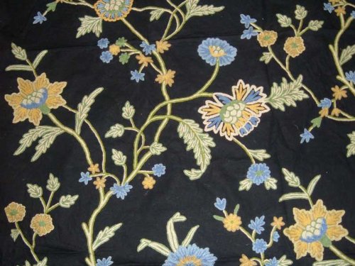 Crewel Fabric Shalimar Bright Blues on Black Cotton Duck