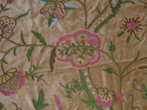 Crewel Fabric Lotus Classic Tan Brown Cotton Velvet