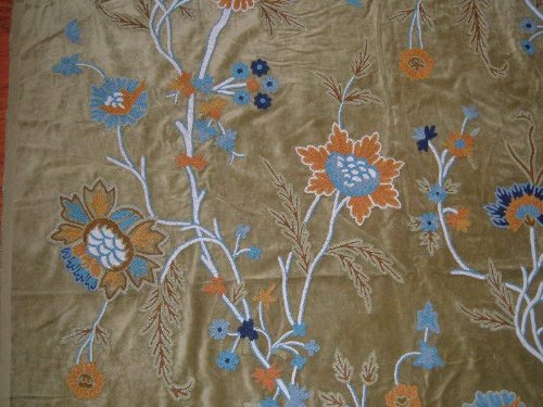 Crewel Fabric Shalimar Light Olive Cotton Velvet