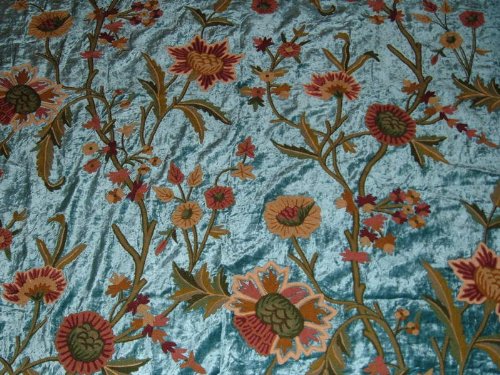 Crewel Fabric Shalimar Turquoise Cotton Viscose Velvet