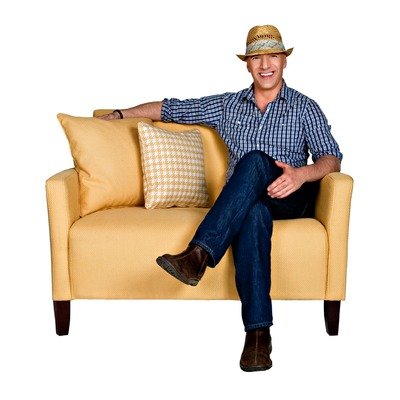 HEP-L33-WDD25A Features: -Loveseat designed by Angelo Surmelis!.-Fabric: Polyester / cotton blend.-Sturdy wood frame is glued and corner blocked.-Extra thick poly-fiber fill cushions for total comfort.-ISTA 3A Certified. Includes: -Upholstered in yellow sunflower fabric, toss floral pillows included. Color/Finish: -Espresso finish. Assembly Instructions: -Easy assembly.-Assembly required. Dimensions: -Overall dimensions: 35.5'' H x 28.5'' W x 48'' D. Warranty: -Angelo Home provides one year warranty on parts.