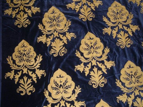 Crewel Fabric Konark Tan on Black Nocturn Cotton Velvet