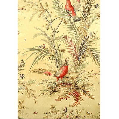 Glenrinnes Lodge Cotton Print - Red Bird On Gold Indoor Multipurpose Fabric