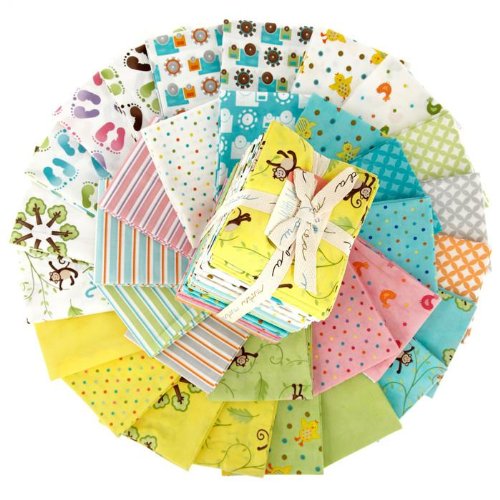 Designed by Deb Strain Katie Strain and Arrin Turnmire for Moda Fabrics this assortment includes 37 fat quarters (18'' x 20''-22'') from the Grow With Me collection for a total yardage of 9.25 yards. The color palette includes pastel colors of green yellow orange lavender blue and white. Use for quilting and craft projects.