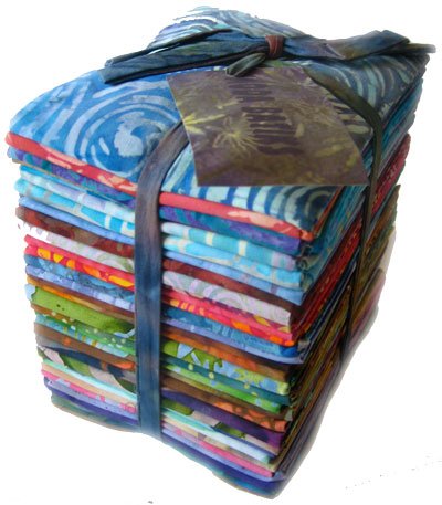 This gorgeous fat quarter bundle includes 36 batik fat quarters - one of every design in the Jewel Batik collection. This premium quiting batik fabric is 100% cotton and hand dyed in Indonesia for Moda Fabrics. Jewel Batiks by Moda Fabrics.