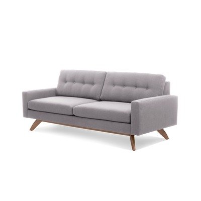 luna-ivory-honey Feet Finish: Honey, Fabric: Ivory Pictured in Pewter Features: -Available in charcoal, chocolate, dolphin gray (medium gray), mouse gray (light gray), and ivory.-Solid wooden legs available in honey and espresso.-Cotten blend fabric upholstery.-Button tufting design.-Removable back and bottom cushions. Dimensions: -Overall dimensions: 31'' H x 84'' W x 36'' D.