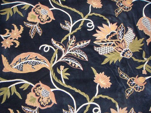 Crewel Fabric Flora Nature Colors on Black Nocturn Cotton Velvet
