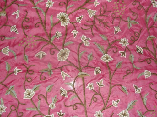 Crewel Fabric Grapes Queen Pink Silk Organza