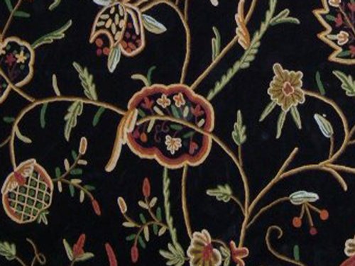 Crewel Fabric Lotus Classic Black Nocturn Cotton Velvet