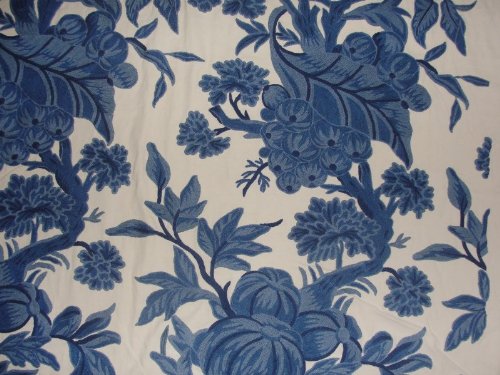 Crewel Fabric Melons and Grapes Blues on Sweetpine Cotton