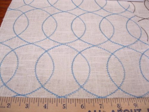 Gate Stitch Azure by Dwell Studio for Robert Allen is beautiful embroidered circle pattern in azure blue on a natural linen look.This medium weight versatile fabric would be perfect for window treatments (swags valances, curtains, and draperies), bed skirts, duvet covers, pillows, slipcovers, upholstery, tote bags, aprons and more! Additional colors of this pattern are available.Be sure to check out our wide selection of new re-orderable Robert Allen fabrics!