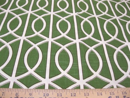 Bella Porte Watercress by Dwell Studio for Robert Allen is screen printed cotton slubbed duck cloth (linen appearance) in ivory outlined with black on a grass green background. This medium weight versatile fabric would be perfect for window treatments (swags valances, curtains, and draperies), bed skirts, duvet covers, pillows, slipcovers, upholstery, tote bags, aprons and more! Be sure to check out our wide selection of new re-orderable Robert Allen fabrics!
