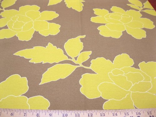 New Peony Canary Taupe Sun Weather by Dwell Studio for Robert Allen @ Home is a great Indoor/Outdoor fabric. The Flowers are a Canary Yellow with a Taupe background. This fabric has superior light fastness, mildew resistant, water repellant and is easy to clean making it perfect for sun rooms, patio furniture, as well as drapery, decorative pillows, chair pads, cushions for deck chairs, slip covers, upholstery and anywhere else a durable outdoor fabric is called for! To extend the life of the fabric store away from direct sunlight when not in use. Be sure to check out our wide selection of new re-orderable Robert Allen fabrics!