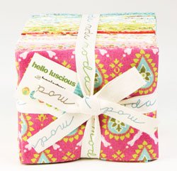 Basic Grey dives right into Spring with Hello Luscious for Moda. Bright and stylish Hello Luscious bursts with design elements: the floral overlaid the pinstripe, the damask intertwined with the flowers, the paisley peeking from within the trellis, and the meadow layered with blooms. Joins us in this delightful foray into colorful fabrics.