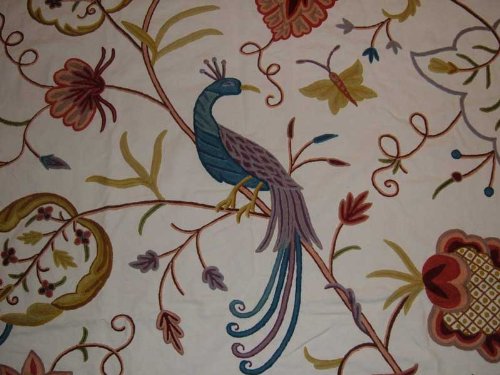 Crewel Fabric Peacock Alley Off White Cotton Duck