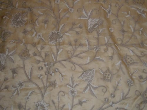 Crewel Fabric Tree of Life Neutrals on Desert Sand Silk Organza