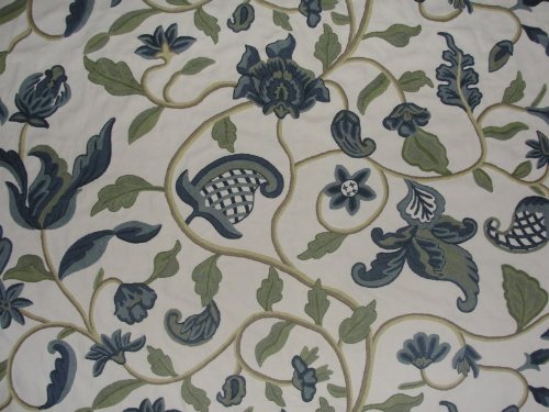 Crewel Fabric Hearty Florals Blues on Off White Cotton Duck