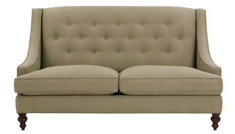 Button back fabric sofa dimensions W86" x D36" x H37". Available in 100 assorted fabrics and two distinct leg color choices! Price shown is for Tier 1 Euro Velvet/Microfiber/Twill option. * Seat Height 19"/ Arm Height 20" * Select Kiln Dried Hardwood Frame * Available In 100 Premium Fabrics * Decorative Turned Leg * Button Tufted "Tight Back" * Guaranteed "No-Sag" Springs * Removable/Zippered Cushion * Carefully Hand-Crafted In U.S.A.