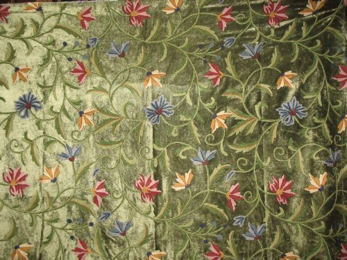 Crewel Fabric Chinar Dark Green Cotton Viscose Velvet