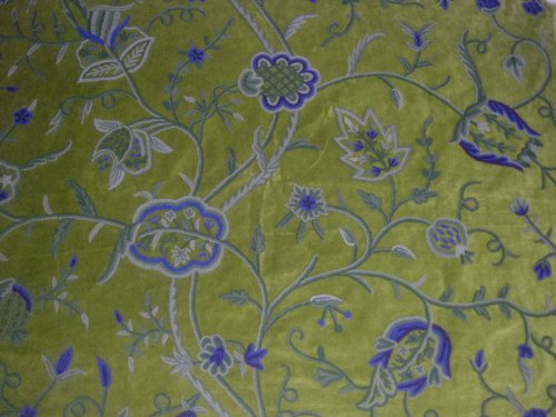 Crewel Fabric Lotus Olive Green Cotton Velvet