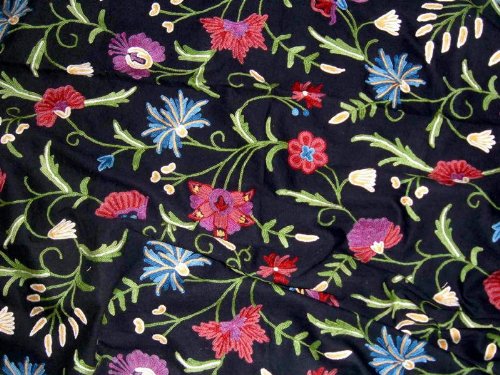 Crewel Fabric Garden of Flowers Black Cotton Duck