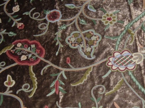 Crewel Fabric Lotus Modern Brown Cotton Viscose Velvet