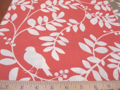 New Botany Coral Sun Weather by Dwell Studio for Robert Allen @ Home is a great Indoor/Outdoor fabric. This has a beautiful viny leaf floral pattern with birds done in White with a Coral background. This fabric has superior light fastness, mildew resistant, water repellant and is easy to clean making it perfect for sun rooms, patio furniture, as well as drapery, decorative pillows, chair pads, cushions for deck chairs, slip covers, upholstery and anywhere else a durable outdoor fabric is called for! To extend the life of the fabric store away from direct sunlight when not in use. Be sure to check out our wide selection of new re-orderable Robert Allen fabrics!