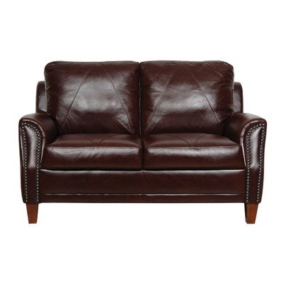 AUSTIN-L Features: -Urban transitional loft style.-Seat Comfort: Medium.-Gun metal nailhead trim.-Loose seat and fixed back cushions.-Foam cushions with dacron fibre topper (above industry standards).-Nine gauge sinuous ''no sag'' wire springs. Options: -Upholstered in 100pct genuine sienna brown Italian leather. Construction: -Frame construction: European hardwoods. Assembly Instructions: -Assembly required. Dimensions: -Seat dimensions: 20'' H x 37'' W x 22'' D. Collection: -Austin collection. Warranty: -Manufacturer provides five year limited warranty against frame and two year limited warranty against foam and leather.