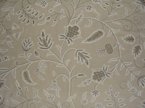 Crewel Fabric Amy Neutrals on Taupe Brown Cotton Duck