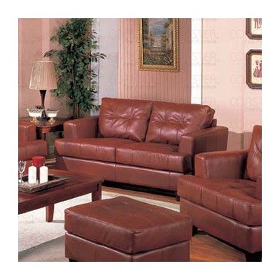 501592 Features: -Anton Loveseat.-Contemporary style.-Tufted back.-Sleek track arm.-Bonded leather.-Square tapered wood legs.-Pocket coil cushion. Options: -Sectional available in chocolate and cream bonded leather upholstery options. Color/Finish: -Dark wood finish on exposed wood feet. Dimensions: -Dimensions: 36'' H x 67.5'' W x 36'' D. Collection: -Other collection items available in brown, black, cream, and red bonded leather upholstery.